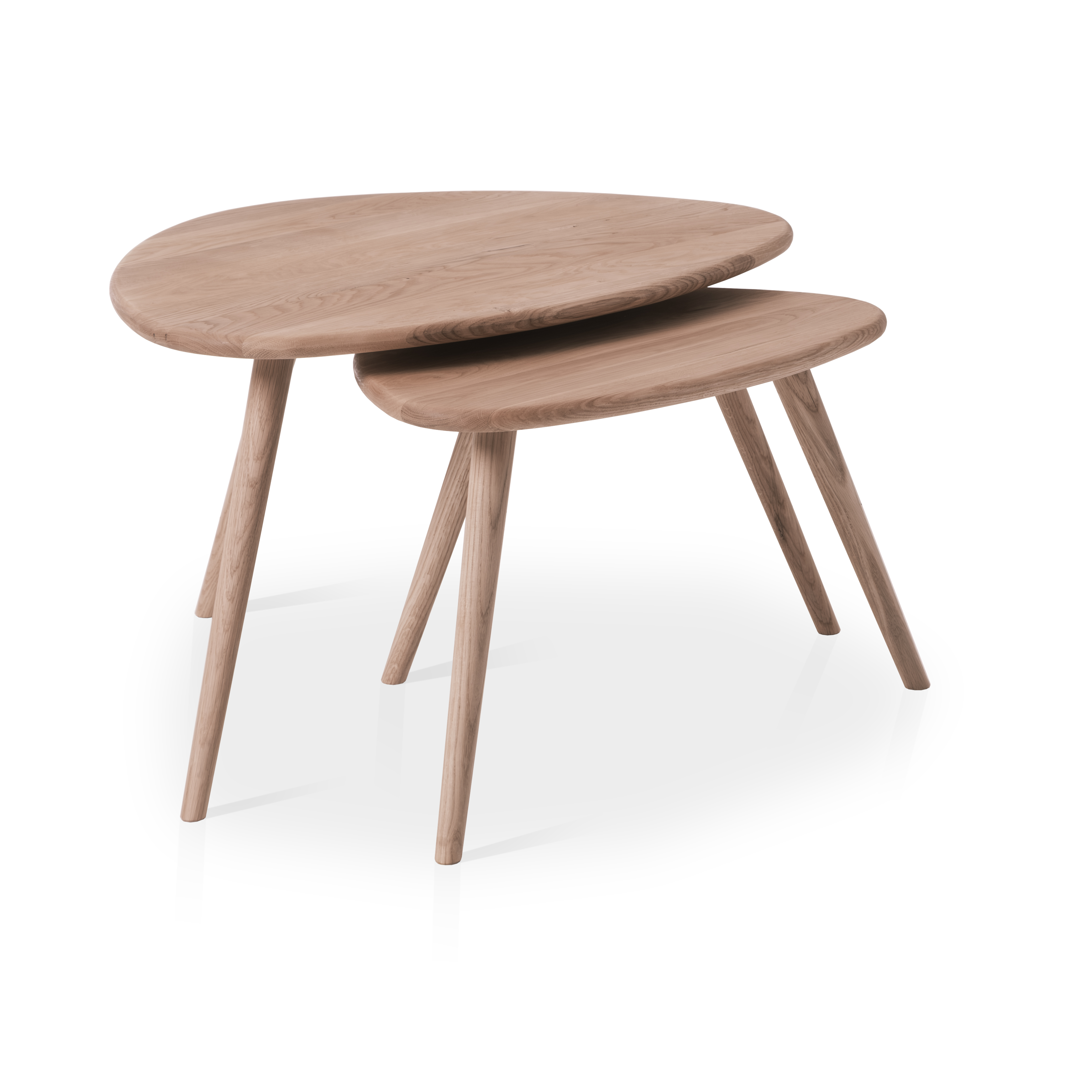Das 2er-Set aus kleinem und mittlerem Tisch passt sich Ihrem Alltag an: Die Tische lassen sich platzsparend untereinander schieben, wenn Sie Raum brauchen – oder nebeneinander stellen, um großzügige Abstellfläche für Getränke, Bücher oder Dekoration zu schaffen. Flexibel, durchdacht und harmonisch zugleich.