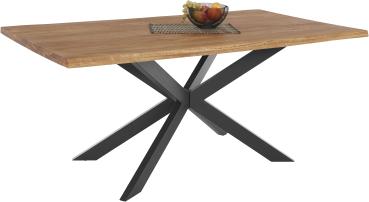 einzigartige Maserung des Eichenholzes verleiht dem Design einen natürlichen Charakter. Die warmen Töne der mit Naturöl veredelten Tischplatte aus Echtholz harmonieren mit dem modernen sternförmigen Gestell aus Metall.