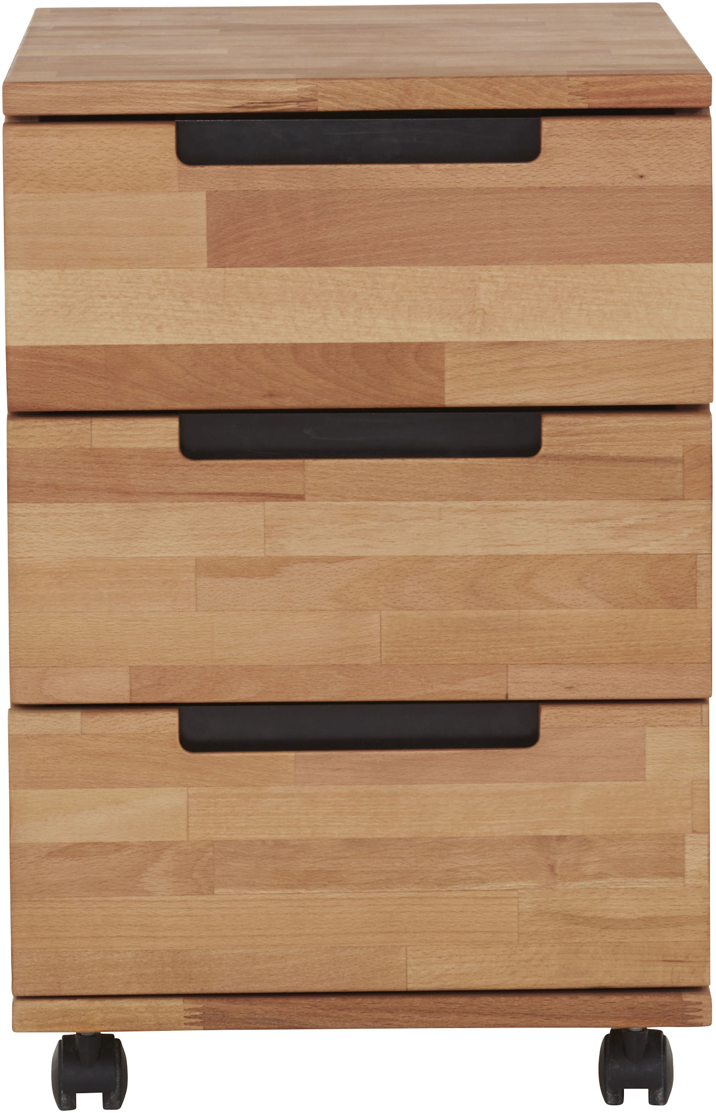 • Aus massiver FSC® - zertifizierter Buche, naturgeölt - ergänzt um die modernen Schubladen-Handgriffe aus schwarzem Blech